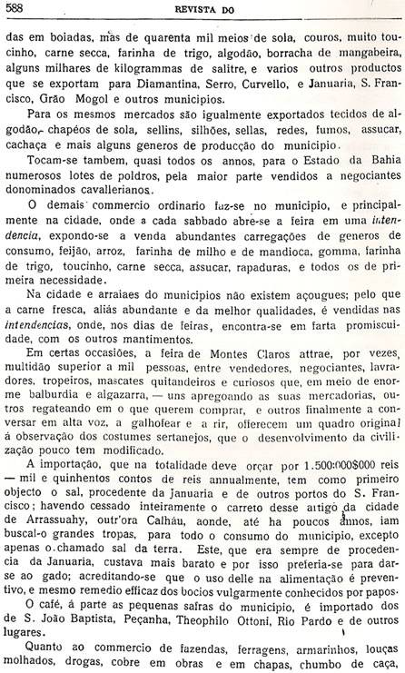 Transcrição da Revista do Archivo Público Mineiro, editada em Ouro Preto, então capital de Minas, em 1897. O conteúdo, doze anos antes, em 1885, saiu no primeiro jornal de Montes Claros, “Correio do Norte”, fundado e editado pelo autor – o depois desembargador Antônio Augusto Veloso, pai da imprensa de Montes Claros. É o mais antigo documento sobre a história de Montes Claros - Parte 33 - (As partes anteriores estão arquivadas na seção Colunistas - Web - Chorografia)![]() (Continuará, nos próximos dias, até a publicação de toda a "Chorografia") |