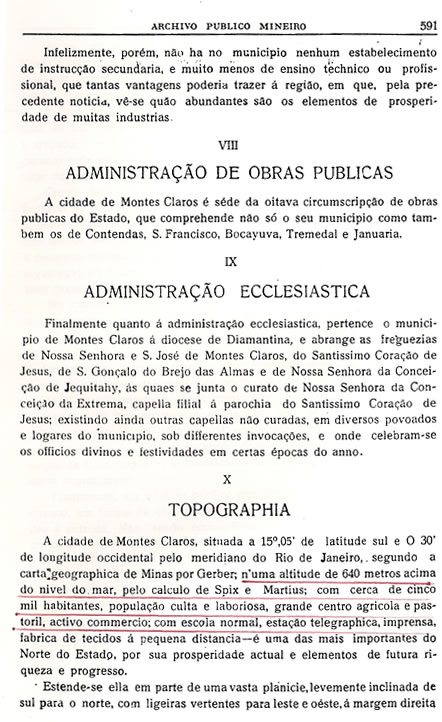 Transcrição da Revista do Archivo Público Mineiro, editada em Ouro Preto, então capital de Minas, em 1897. O conteúdo, doze anos antes, em 1885, saiu no primeiro jornal de Montes Claros, “Correio do Norte”, fundado e editado pelo autor – o depois desembargador Antônio Augusto Veloso, pai da imprensa de Montes Claros. É o mais antigo documento sobre a história de Montes Claros - Parte 11 - (As partes anteriores estão arquivadas na seção Colunistas - Web - Chorografia)![]() (Continuará, nos próximos dias, até a publicação de toda a "Chorografia") |